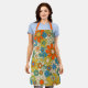 Groovy Retro Jardín Floral Alegre patrón de los años 70 Mostaza Naranja azul verde y beige. Flores estéticas vívidas, alegres, ventilares, coloridas, con un ambiente de los años 1960. Por Kierkegaard Design Studio.