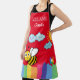 Feliz sol de abejas nubes de color arcoiris con un patrón de fondo rojo para el flamante chef. Puedes personalizar el nombre en el delantal.