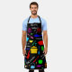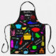 Un colorido patrón de utensilios de cocina y utensilios contra el fondo negro. Un delantal impreso en todo el personalizable para cualquiera. Puedes cambiar o borrar cuatro imágenes y cinco textos de manera independiente: "La cocina de Charlotte", "El arte de cocinar", "El asistente de cocina", "El jefe ejecutivo" y "Buena comida, buen humor". Si necesita cambiar el color del fondo, el color y el tipo de letra, la ubicación de cualquier texto, por favor, utilice el botón "Editar diseño" o la opción "Hacer clic en el personalizar más adelante". No olvide elegir el tamaño del delantal y el color de la correa. ¡Sólo personalizar y compra uno, diviértete y sé feliz!