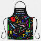 Patrón colorido de herramientas, pernos y tuercas contra el fondo negro. Un delantal impreso en todo el personalizable para genios mecánicos. Puede cambiar o borrar dos imágenes y cinco textos de forma independiente: "taller de Benjamin", "artesano", "práctico", "mecánico" y "experto". Si necesita cambiar el color del fondo, el color y el tipo de letra, la ubicación de cualquier texto, por favor, utilice el botón "Editar diseño" o la opción "Hacer clic en el personalizar más adelante". No olvide elegir el tamaño del delantal y el color de la correa. ¡Sólo personalizar y compra uno, diviértete y sé feliz!