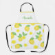 Un delantal moderno y fresco con un patrón de limones acuarelas y un nombre de personalizable.