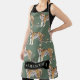 Delantal Patrón de tigres de acuarela verde tropical con no