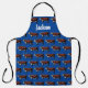 Este delantal muestra un patrón de toros de Hereford extraídos de una huella vintage sobre un fondo azul.