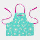 Delante de los niños con un verde-azul tropical y un rosa brillante. Esta cocina, o jardinería, delantal tiene una plantilla para su nombre en rosa magenta. Las correas coinciden con el color rosado. Una huella que incluye palmeras, gafas de sol, estrellas del mar, chanclas y conchas en verano. También viene en tamaños adultos.