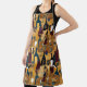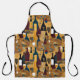 Espléndido delantal de arte artístico con botella de vino y patrón de vidrio.