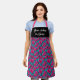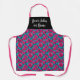 hogar de bonito, cocina, jardín, salón de pelo o delantal peluquero de fondo negro con estampado repetitivo de rosas rosados y turquesas vibrantes. Añade tu nombre personal o el nombre de la empresa comercial de salón en el divertido guión tipo letra manuscrita. Crea un delantal floral colorido para el peluquero, ya sea uno o varios, sin pedido mínimo, sin cargo por diseño.