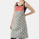 Este modelo moderno de mediados de siglo presenta flores verde azuladas y corales.