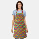 Este delantal de estilo retro colorido presenta un patrón gráfico groovy inspirado en los años 70 con discos superpuestos en un arcoiris de colores centrado en un sol con rayos ligeramente torcidos. Editar diseño para cambiar el color de fondo.