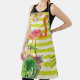 Delantal patrón transparente con flamingo rosa y tr exótic