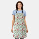 Delicioso delantal de Navidad con patrones navideños verdes y rojos.