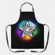 Pentagrama luminoso de dibujo artístico con cinco elementos mágicos, agua, tierra, fuego, astral, aire sobre fondo negro. Pentagrama de Wiccan. Wicca