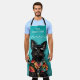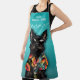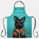 Un lindo schnauzer negro en miniatura sobre un turquesa brillante acentuado con huellas de pata, este delantal perrito que prepara a los perros es divertido para sus negocios y empleados.