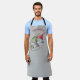 El delantal con temática navideña presenta un ilustracion acuarela de un par de gnomos sobre un trineo veloz. Fondo gris con texto en personalizable en rojo oscuro moderno.
