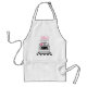 Un delantal que ofrece un ilustracion de una estufa blanca retra con un pote rosado que se sienta en el top. La estufa está en un piso blanco y negro. Personalice el texto en la parte superior.