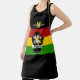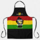 Estiloso Apron de la Escritura Cristiana con un mensaje motivacional que dice que las VIDAS NEGRAS importan - TODOS EN CRISTO, que se basa en el verso de la Biblia de los galatianos 3:28-29, que dice 'No hay judío ni gentil, esclavo ni libre... para todos ustedes son uno en Cristo Jesús'. El motivo del puño de poder negro se coloca contra paneles rojos, amarillos y verdes, con tipografía blanca. El fondo es NEGRO. Hay un monograma de PERSONALIZABLE y un nombre de marcador de posición en la parte superior, y el versículo de la Biblia también es personalizable, así que puedes personalizar con la redacción de tu propia elección. Hay otras versiones de color disponibles.