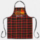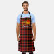 Un delantal único, moderno, de moda, lindo y divertido con la imagen de una llama ardiente de rojo vivo sobre un clásico patrón de tartán de manchas escocesas de color rojo, negro, blanco y amarillo. Con espacio para personalizar o personalización con el nombre que elija. Un regalo lindo para el cumpleaños del padre, el día del padre o los Navidades. Divertido y original regalo para el rey de parrilladas o maestro de parrilladas con sentido del humor, su marido, los que disfrutan de la cocina, el cocinero con actitud o el no tan perfecto chef de carne.