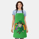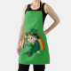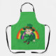 Apron con el Ilustracion de un lindo leprechaun sonriente vestido con un traje verde, un sombrero top mientras sostiene una hoja de shamrock, con un arco iris colorido al fondo Un diseño perfecto para celebrar el Día de San Patricio, dibujado por Radka2D