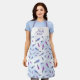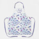 Personalizado Manicurista Nail Tech Graphics Purple White Apron. El diseño tiene todas las herramientas del oficio, como esmalte de uñas, pinceles y alfileres.
