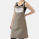 usted y su personal lucirán estupendos hornillos, cocinas, raciones, trabajos de registro, etc. en este delantal minimalista, sencillo y contemporáneo con espacio para su nombre de negocio, nombre de empleados o cualquier otra cosa que desee incluir. El diseño presenta una base sólida de un color beige/caqui cálido y cremoso, acompañado de una caja rectangular bordeada que muestra dos líneas de texto personalizado con letras simples y contemporáneas en el sísmico. Personalice con su nombre comercial, un nombre y título de empleado o cualquier cosa que desee. Perfecto para cualquier tipo de negocio. el icono del pasador giratorio se puede reemplazar o omitir juntos.