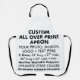 Personalizado personalizado en todo el dispositivo de impresión, de 30" de largo x 26" de ancho, es un poliéster lavable de máquina 100% suave y duradero con opciones de color ilimitadas de correa de delantal. Grandes descuentos de volumen para compras masivas múltiples disponibles. Diseñar, crear, hacer sus propios patrones de alta calidad a partir de una plantilla en blanco. Personalizar tu elección de delantal con una foto, logotipo, monograma, imagen o diseño, además de añadir tu propio texto. Este delantal de impresión de borde a borde de alta calidad se presenta en tres opciones de tamaño: Grande - 34" largo x 27" ancho, Medio - 30" largo x 26" ancho, o Pequeño - 20" largo x 24" ancho para los niños. Un delantal personalizado hace un gran personalizable, regalo personalizado para un chef, un cocinero, para mamá o papá, un nuevo hogar, Navidades, o para cualquier panadería o negocio de comida. Personalice la ropa del personal de su restaurante, bar, bistró o cafetería con sus elegantes diseños de logo de marca personalizado.