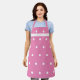 Delantal rosa y blanco personalizado de lunares. Decorado con un simple patrón de lunares blancos y personalizado con un nombre personalizado impreso en el pecho. Es lindo y femenino con un toque retro. Personalízalo reemplazando el nombre de muestra con tu nombre o un nombre personalizado.