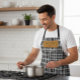 A professional and stylish black and white plaid apron perfect for the chef in your life. It features a personalized faux leather patch with the name "Michael" and the title "Chef." This durable apron is an excellent gift for a grill master, professional cook, baker, or a thoughtful Father's Day present.