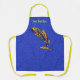 Este delantal de la cocina es un azul profundo con pequeños flecks blancos y un lujoso pez con escamas de múltiples colores vivos de amarillo, naranja, verde, azul y rojo. Personalizar el texto con la plantilla.