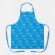 Apron en un patrón de peces retro, moderno, caprichoso, de color turquesa, acuático, verde cal y azul cielo, sobre un fondo azul ceruleño profundo