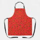 Delgado delantal rojo adornado con pimientos picantes de chile rojo y verde dibujados a mano, con un diamante monogramo en la parte delantera donde se puede añadir su propio primer primer