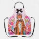 Turn everyday cooking into a bold statement with this artistic tiger apron! Featuring a striking illustrated tiger surrounded by a lush bouquet of vibrant florals, this design is finished with a chic faux-bow detail at the neckline for a touch of 2026 "Coquette" aesthetic charm. Set against a soft pastel pink background, this apron perfectly blends playful whimsy with confident, modern style.