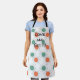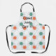 Este delantal tiene un diseño moderno de mediados de siglo de círculos con líneas en naranja y verde.