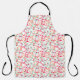 Este delantal tiene un diseño moderno de mediados de siglo de polígonos esparcidos en tonos rosas, salmón, naranja y azul claro sobre un campo de blanco. Si quieres el mismo diseño con colores diferentes, envíame un mensaje.