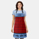 Pollos modernos y rústicos de moda sobre manta negra de búfalo roja y monograma azul Apron.
