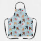 Cute Valentine's Day Poodles with in black, white, gray, apricot and brown color coats wearing red, pink, and white polka dot and heart sweaters with scattered paw prints and arrow on a blue background.