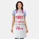 Este delantal de los Navidades es perfecto para celebrar la primera Navidad como madre. La frase dice "Primera Navidad como mamá" con letras rojas modernas en un fondo blanco.