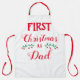 Este delantal de los Navidades es perfecto para celebrar la primera Navidad como padre. La frase dice Primera Navidad como papá con letras rojas modernas en un fondo blanco.