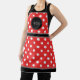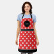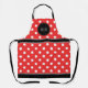 Los puntos de polka rojo y blanco con delantal de monograma negro.
