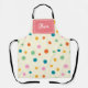 Este delantal personalizado adorable presenta lunares coloridos con una pancarta de nombre rojo lindo.