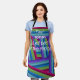 Este delantal tiene un diseño de grupos de líneas moradas, verde azuladas, turquesas, azules, verdes y rojas. Si te gusta el diseño pero prefieres colores diferentes, envíame un mensaje.