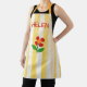 Divertido delantal con rayas amarillas brillantes y una flor hippy / boho. Nombre editable y puede borrar la imagen o agregar la propia si es necesario.