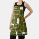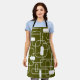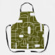 Este delantal tiene un diseño moderno de mediados de siglo de rectángulos abiertos y cerrados en blanco sobre un campo de camo verde.
