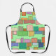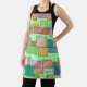Este delantal tiene un diseño moderno y boho de rectángulos adheridos a líneas horizontales de varios tamaños y colores boho.