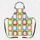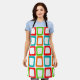 Este delantal tiene un diseño moderno de mediados de siglo de repetición de rectángulos sesgados en rojo, naranja, verde y turquesa.