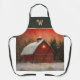 Delantal Red Barn w Star n Winter Trees Farmhouse Monogram
