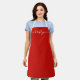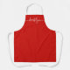 • Festive red apron with modern white script font
