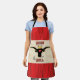 ¡Este es un cómico "Apron de una mujer amable"! Cuenta con una silueta de vaca Longhorn negra con pestañas y una corona con joyas rodeadas de palabras cómicas..."REINA DE LA GRILL"...en un fondo rojo! Diseño De Arte Original Por El Artista Kerry Miller!