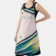 Este Print Apron de todo sobre presenta obras de arte originales de ZoeSPEAK, una vista más cercana de las curvas del casco de un barco a la luz del sol de la tarde. Las obras de arte se realizan en tonos azules y blancos cálidos, con amarillos a la luz del sol. Hay texto opcional (El Fiesta de navegación) y (Capitán Cocina) que está configurado para que usted lo personalize, o elimine si lo prefiere. Si estás en un bote con amigos, es un fiesta de paseos en bote, y puedes ser el cocinero.