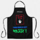 Atrévase a ser dramático en la cocina, con este delantal negro que puede ser personalizado con su nombre. El delantal tiene las palabras: "RETROCEDER ESTO PODRÍA CONSEGUIR MESSY! en las capitales roja, azul y verde. Está disponible en tamaños pequeños, medianos y grandes.