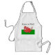 Un delantal blanco robusto a modificar para requisitos particulares, con un dragón rojo lindo Galés con "País de Gales para siempre" en Galés en letras negras, de un ilustracion pintado a mano del watercolour de Judy Adamson.
