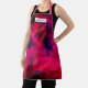 Delantal con un fondo abstracto genial. Las pinceladas de rojo oscuro y morado crean un diseño vibrante moderno y audaz. Un rectángulo superpuesto en la parte superior con un texto personalizado dentro.
